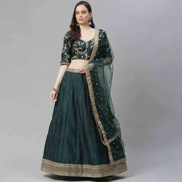 Green Art Silk Aline Lehenga