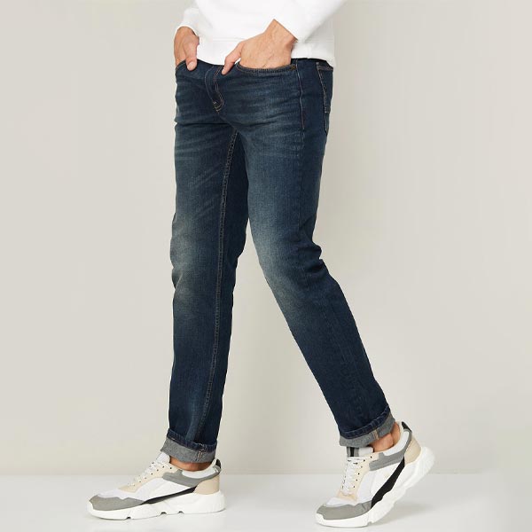 - Dark shade, light fade blue jeans